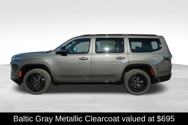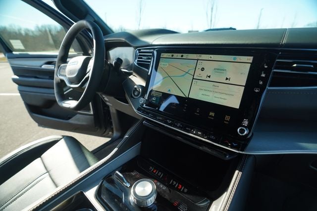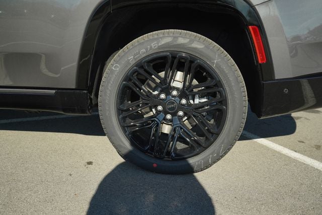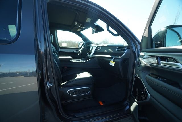 Check Out All These options Black Appearance Package (118 Mph Maximum Speed Calibration, Black Exterior Accents, Titanium Daylight Opening Upper, Titanium Upper Grille Applique, and Wheels: 22 x 9 Painted Gloss Black), Limited Reserve Package, Quick Order Package 29D Reserve (19 Speaker McIntosh Audio System, 2nd Row Manual Window Shades, 3 Panel Sunroof, Augmented HUD, Cargo Cover, Cluster 12 TFT Color Display, Instrument Panel, Interior Rear Facing Camera, Luxury Front and Rear Floor Mats, P and P Park and Unpark Assist with Stop System, Power Deployable Running Boards, Quadra-Lift Air Suspension, Reversible Carpet/Vinyl Cargo Mat, Semi Active Damping, Side Distance Warning, Smartphone as a Key Prep, and Surround View Camera System), 3.55 Rear Axle Ratio, 3rd row seats: bench, 4-Wheel Disc Brakes, 9 Speakers, ABS brakes, Air Conditioning, Alloy wheels, AM/FM radio: SiriusXM with 360L, Anti-whiplash front head restraints, Apple CarPlay/Android Auto, Audio memory, Auto Adjust in Reverse Exterior Mirrors, Auto High-beam Headlights, Auto-dimming door mirrors, Auto-Dimming Exterior Driver Mirror, Auto-dimming Rear-View mirror, Auto-leveling suspension, Automatic temperature control, Brake assist, Bumpers: body-color, Compass, Delay-off headlights, Driver door bin, Driver vanity mirror, Driver's Seat Mounted Armrest, Dual front impact airbags, Dual front side impact airbags, Electronic Stability Control, Emergency communication system: Jeep Connect, Exterior Mirrors Approach Lamps, Exterior Mirrors with Memory, Exterior Mirrors with Supplemental Signals, Exterior Parking Camera Rear, Four wheel independent suspension, Front anti-roll bar, Front Bucket Seats, Front Center Armrest w/Storage, Front dual zone A/C, Front fog lights, Front reading lights, Fully automatic headlights, Garage door transmitter, Heated door mirrors, Heated Exterior Mirrors, Heated front seats, Heated rear seats, Heated steering wheel, Illuminated entry, Knee airbag, Leather Trimmed Bucket Seats, Low tire pressure warning, Memory seat, MyFlexCare Service Plan, Navigation System, Normal Duty Suspension, Occupant sensing airbag, Outside temperature display, Overhead airbag, Overhead console, Panic alarm, Passenger door bin, Passenger seat mounted armrest, Passenger vanity mirror, Power door mirrors, Power driver seat, Power Liftgate, Power passenger seat, Power steering, Power windows, Radio data system, Radio: Uconnect 5 Nav with 12.0 Display, Rain sensing wipers, Rear air conditioning, Rear anti-roll bar, Rear reading lights, Rear seat center armrest, Rear window defroster, Rear window wiper, Reclining 3rd row seat, Remote keyless entry, Security system, Speed control, Speed-sensing steering, Speed-Sensitive Wipers, Split folding rear seat, Steering wheel memory, Steering wheel mounted audio controls, Tachometer, Telescoping steering wheel, Tilt steering wheel, Traction control, Trip computer, Turn signal indicator mirrors, Variably intermittent wipers, Ventilated front seats, Ventilated rear seats, Voltmeter, and Wheels: 20 x 9 Aluminum Painted.