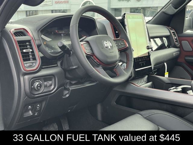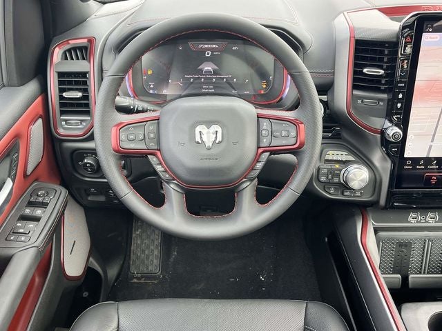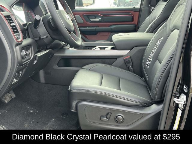 Check Out All These options Bed Utility Group (Exterior 115V AC Outlet, MOPAR 4 Adjustable Cargo Tie-Down Hooks, and MOPAR Spray in Bedliner), Quick Order Package 21W Rebel, Rebel Level 2 Equipment Group (115V Auxiliary Rear Power Outlet, 14.4 Touchscreen Display, 2-Door Passive Entry, Front Door Locks, 4G LTE Wi-Fi Hot Spot, Accent Color Door Handles, Accent Color Premium Power Mirrors, Accent Color Tailgate Handle, Apple CarPlay, Auto Power-Folding Mirrors, Auto-Dimming Exterior Driver Mirror, Black Painted Exterior Mirrors Caps, Connected Travel and Traffic Services, Connectivity - US/Canada, Convex Wide-Angle Exterior Mirror Insert, Disassociated Touchscreen Display, Driver Seat Memory, Dual Wireless Charging Pad, Exterior Mirrors Approach Lamps, Exterior Mirrors Courtesy Lamps, Exterior Mirrors with Heating Element, Exterior Mirrors with Memory, Exterior Mirrors with Supplemental Signals, Front Passenger Interactive Display, Global Telematics Box Module, Google Android Auto, GPS Antenna Input, GPS Navigation, Harman/Kardon 19 Speaker Premium Sound, HD Radio, Heated Second Row Seats, Integrated Center Stack Radio, Integrated Voice Command with Bluetooth®, Media Hub with 2 Charge Only USBs, Off-Road Information Pages, Power 2-Way Passenger Lumbar Adjust, Power Adjust 8-Way Front Passenger Seat, Power Adjustable Pedals with Memory, Power Tailgate, Proximity Approach/Departure Lamps, Radio: Uconnect 5 Nav with 14.4 Display, Radio/Driver Seat/Mirrors/Pedals Memory, Rain Sensitive Windshield Wipers, Rear Window Defroster, Security Alarm, SiriusXM Radio Service, SiriusXM with 360L, Smartphone as a Key Capable, and USB Host Flip), Technology Group (12-Way/1-Way Trailer Connector, Heads-Up Display, and LED CHMSL Lamp), 10 Speakers, 3.92 Rear Axle Ratio, 33 Gallon Fuel Tank, 4 Way Front Headrests, 4-Wheel Disc Brakes, ABS brakes, Active Noise Control System, Air Conditioning, Alloy wheels, AM/FM radio: SiriusXM with 360L, Apple CarPlay/Android Auto, Auto High-beam Headlights, Auto-dimming Rear-View mirror, Automatic temperature control, Black Exterior Mirrors, Brake assist, Bucket Seats, Cloth/Vinyl Bucket Seats, Compass, Delay-off headlights, Dome Dual LED Reading Lamp, Driver door bin, Driver vanity mirror, Dual front impact airbags, Dual front side impact airbags, Dual-Pane Panoramic Sunroof, Electronic Stability Control, Front anti-roll bar, Front Bucket Seats, Front Center Armrest w/Storage, Front dual zone A/C, Front fog lights, Front reading lights, Front Seat Back Map Pockets, Front wheel independent suspension, Full Length Upgraded Floor Console, Fully automatic headlights, Garage door transmitter, Heated door mirrors, Heated Front Seats, Heated front seats, Heated Steering Wheel, Heated steering wheel, Illuminated entry, Leather steering wheel, Low tire pressure warning, Manual Folding Exterior Mirrors, MyFlexCare Service Plan, Navigation System, Occupant sensing airbag, Outside temperature display, Overhead airbag, Overhead console, Panic alarm, ParkView Rear Back-Up Camera, Passenger door bin, Passenger vanity mirror, Power 2-Way Driver Lumbar Adjust, Power Adjust 8-Way Driver Seat, Power door mirrors, Power driver seat, Power steering, Power windows, Radio data system, Radio: Uconnect 5 Navigation with 12.0 Display, RamBox Cargo Management System, Rear 60/40 Folding Seat, Rear anti-roll bar, Rear seat center armrest, Rear step bumper, Remote keyless entry, Speed control, Split folding rear seat, Steering wheel mounted audio controls, Tachometer, Telescoping steering wheel, Tilt steering wheel, Traction control, Trip computer, Variably intermittent wipers, Voltmeter, and Wheels: Price includes: $1000 - 2026 National Bonus Cash . Exp. 03/02/2026 $3500 - 2026 National Retail Consumer Cash . Exp