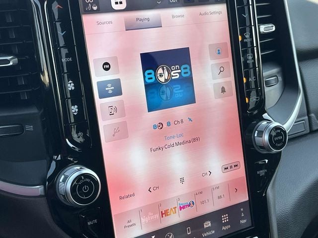 Check Out All These options Bed Utility Group (Exterior 115V AC Outlet, MOPAR 4 Adjustable Cargo Tie-Down Hooks, MOPAR Spray in Bedliner, and Pick-Up Box Lighting), Big Horn Level 2 Equipment Group (115V Auxiliary Power Outlet, 115V Auxiliary Rear Power Outlet, 12 Touchscreen Display, 2nd Row in Floor Storage Bins, 3 Rear Seat Head Restraints, 4 Way Front Headrests, 400W Inverter, 4G LTE Wi-Fi Hot Spot, 9 Amplified Speakers with Subwoofer, Air Conditioning ATC with Dual Zone Control, Apple CarPlay, Auto Power-Folding Mirrors, Auto-Dimming Exterior Driver Mirror, Auto-Dimming Rear-View Mirror, Black Exterior Mirrors, Black Premium Power Mirrors, Body Color Fender Flares, Bucket Seats, Center Console Parts Module, Cluster 7.0 TFT Color Display, Configurable Drive Mode, Connected Travel and Traffic Services, Connectivity - US/Canada, Convex Wide-Angle Exterior Mirror Insert, Deluxe Cloth Bucket Seats, Disassociated Touchscreen Display, Exterior Mirrors Courtesy Lamps, Exterior Mirrors with Heating Element, Exterior Mirrors with Supplemental Signals, Front Seat Back Map Pockets, Full Length Floor Console, Global Telematics Box Module, Glove Box Lamp, Google Android Auto, GPS Antenna Input, GPS Navigation, HD Radio, Heated Front Seats, Heated Steering Wheel, Integrated Center Stack Radio, Integrated Voice Command with Bluetooth®, Leather Wrapped Steering Wheel, LED Dome Lamp with on/Off Switch, LED Footwell Lighting, Manual Adjust 4-Way Front Passenger Seat, Media Hub with 2 Charge Only USBs, Overhead LED Lamps, Power 2-Way Driver Lumbar Adjust, Power Adjust 8-Way Driver Seat, Power Adjustable Pedals, Premium Overhead Console, Radio: Uconnect 5 Navigation with 12.0 Display, Rear 60/40 Folding Seat, Rear Center Armrest, Rear Power Sliding Window, Rear Window Defroster, Remote Tailgate Release, Security Alarm, SiriusXM Radio Service, SiriusXM with 360L, Steering Wheel Mounted Audio Controls, Sun Visors with Illuminated Vanity Mirrors, Universal Garage Door Opener, and USB Host Flip), Night Edition (Accent Color Door Handles, Accent Color Premium Power Mirrors, Accent Color Tailgate Handle, Anti-Spin Differential Rear Axle, Black Exterior Truck Badging, Black Headlamp Bezels, Black Interior Accents, Black Painted Exterior Mirrors Caps, Black Tail Lamp Bezels, Body Color Front Bumper, Body Color Rear Bumper with Step Pads, Dual Exhaust with Black Tips, Grille Black Surround Black Mesh, RAM Grille Badge - Black, and Wheels: 20 x 9.0 Aluminum Painted Clad), Quick Order Package 27Z Big Horn, 33 Gallon Fuel Tank, 4-Wheel Disc Brakes, 48V Belt Starter Generator, 6 Speakers, ABS brakes, Air Conditioning, Alloy wheels, AM/FM radio, Apple CarPlay/Android Auto, Auto High-beam Headlights, Brake assist, Bumpers: chrome, Cloth Bucket Seats, Cluster 12 TFT Color Display, Compass, Delay-off headlights, Driver door bin, Dual front impact airbags, Dual front side impact airbags, Electronic Stability Control, Front anti-roll bar, Front Bucket Seats, Front Center Armrest w/Storage, Front fog lights, Front reading lights, Front wheel independent suspension, Fully automatic headlights, Heated door mirrors, Illuminated entry, Low tire pressure warning, Manual Adjust 4-Way Driver Seat, Manual Folding Exterior Mirrors, Mopar Black Tubular Side Steps, MOPAR Front and Rear Rubber Floor Mats, MyFlexCare Service Plan, Occupant sensing airbag, Outside temperature display, Overhead airbag, Overhead console, Panic alarm, ParkView Rear Back-Up Camera, Passenger door bin, Passenger vanity mirror, Power door mirrors, Power steering, Power windows, Radio data system, Radio: Uconnect 5 W with 8.4 Display, RAM Grille Badge - Chrom Price includes: $3500 - 2026 National Retail Bonus Cash . Exp
