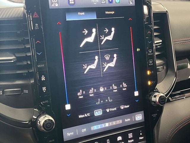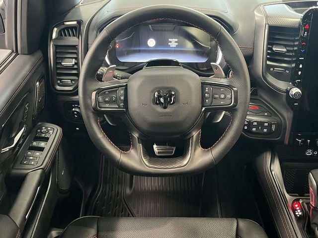 Check Out All These options Quick Order Package 22Y RHO, RHO Level 1 Equipment Group (12-Way/1-Way Trailer Connector, 14.4 Touchscreen Display, 240 Amp Alternator, 4G LTE Wi-Fi Hot Spot, Connected Travel and Traffic Services, Connectivity - US/Canada, Disassociated Touchscreen Display, Driver Power Seat Back Massage, Driver Seat Memory, Driver/Passenger Wrapped Assist Handles, Drowsy Driver Detection, Dual Wireless Charging Pad, Evasive Steer Assist, Exterior Mirrors with Memory, Front Passenger Interactive Display, Front Passenger Power Seat Back Massage, Full Length Premium Upgraded Floor Console, GPS Navigation, Hands-Free Active Driving Assist System, Harman/Kardon 19 Speaker Premium Sound, HD Radio, Heads-Up Display, Heated Second Row Seats, Integrated Center Stack Radio, Integrated Voice Command with Bluetooth®, Intersection Collision Assist System, Leather/Carbon Flat-Bottom Steering Wheel, LED CHMSL Lamp, Luxury Front Door Trim Panel, Power Adjustable Pedals with Memory, Power Tailgate, Premium Wrapped Instrument Panel Bezel, Radio: Uconnect 5 Nav with 14.4 Display, Radio/Driver Seat/Mirrors/Pedals Memory, Rain Sensitive Windshield Wipers, Real Carbon Fiber Interior Accents, Rear 60/40 Folding Split Recline Seat, SiriusXM Radio Service, Smartphone as a Key Capable, Surround View Camera System, Traffic Sign Recognition, USB Host Flip, Ventilated Front Seats, and Ventilated Rear Seats), Towing Technology Group (Trailer Hitch Line-Up Assist and Trailer Reverse Guidance), Trailer Tow Group (Trailer Reverse Steering Control and Trailer Tire Pressure Monitoring System), 10 Speakers, 3.92 Rear Axle Ratio, 4-Wheel Disc Brakes, ABS brakes, Adaptive suspension, Adjustable pedals, Air Conditioning, Alloy wheels, AM/FM radio, Apple CarPlay/Android Auto, Auto High-beam Headlights, Auto Power-Folding Mirrors, Auto-dimming door mirrors, Auto-Dimming Exterior Driver Mirror, Auto-Dimming Exterior Passenger Mirror, Auto-dimming Rear-View mirror, Automatic temperature control, Black Exterior Mirrors, Black Power-Fold Trailer Tow Mirrors, Brake assist, Compass, Delay-off headlights, Dome Dual LED Reading Lamp, Driver door bin, Driver vanity mirror, Dual front impact airbags, Dual front side impact airbags, Dual-Pane Panoramic Sunroof, Electronic Stability Control, Exterior Mirrors Courtesy Lamps, Exterior Mirrors with Heating Element, Exterior Mirrors with Supplemental Signals, Exterior Parking Camera Rear, Flareside Box, Forward and Reverse Utility Lights, Front anti-roll bar, Front Bucket Seats, Front Center Armrest w/Storage, Front dual zone A/C, Front fog lights, Front reading lights, Front wheel independent suspension, Fully automatic headlights, Garage door transmitter, Heated door mirrors, Heated front seats, Heated steering wheel, Illuminated entry, Leather Shift Knob, Leather steering wheel, Leather Trimmed Bucket Seats, Low tire pressure warning, Mirror Clearance/Running Lights, MOPAR Off-Road Style Running Boards, MOPAR RHO Exterior Graphics, MOPAR RHO Hood Graphics, MyFlexCare Service Plan, Navigation System, Occupant sensing airbag, Outside temperature display, Overhead airbag, Overhead console, Panic alarm, Passenger door bin, Passenger vanity mirror, Power door mirrors, Power driver seat, Power passenger seat, Power steering, Power Telescoping Mirrors, Power windows, Power-Adjustable Convex Aux Mirrors, Radio data system, Radio: Uconnect 5 Navigation with 12.0 Display, Rear reading lights, Rear seat center armrest, Rear step bumper, Rear window defroster, Red Interior Accents, Remote keyless entry, Security system, Speed control, Split folding rear seat, Sport steering wheel, Steering wheel mounted audio controls, Tachometer, Telescoping steering wheel, Tilt steering wheel, Traction control, Traile