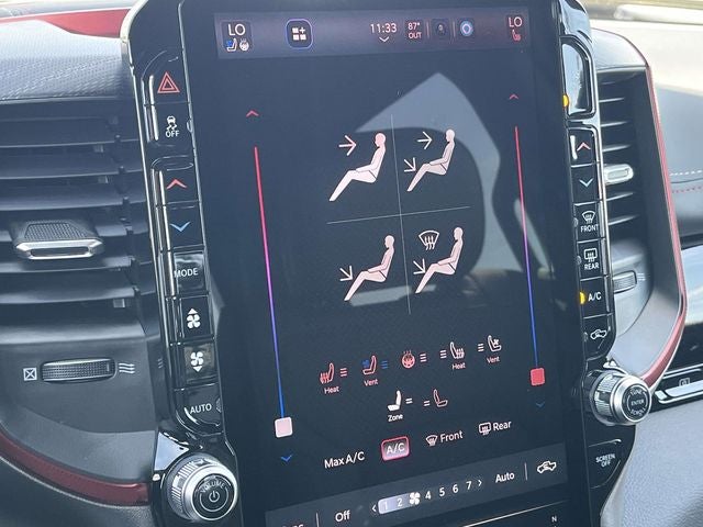 Check Out All These options Advanced Safety Group II (12-Way/1-Way Trailer Connector, Active Driving Assist System, Drowsy Driver Detection, Evasive Steer Assist, Intersection Collision Assist System, Surround View Camera System, and Traffic Sign Recognition), Bed Utility Group (Exterior 115V AC Outlet, MOPAR 4 Adjustable Cargo Tie-Down Hooks, and MOPAR Spray in Bedliner), Quick Order Package 21W Rebel, Rebel Level 2 Equipment Group (115V Auxiliary Rear Power Outlet, 14.4 Touchscreen Display, 2-Door Passive Entry, Front Door Locks, 4G LTE Wi-Fi Hot Spot, Accent Color Door Handles, Accent Color Premium Power Mirrors, Accent Color Tailgate Handle, Apple CarPlay, Auto Power-Folding Mirrors, Auto-Dimming Exterior Driver Mirror, Black Painted Exterior Mirrors Caps, Connected Travel and Traffic Services, Connectivity - US/Canada, Convex Wide-Angle Exterior Mirror Insert, Disassociated Touchscreen Display, Driver Seat Memory, Dual Wireless Charging Pad, Exterior Mirrors Approach Lamps, Exterior Mirrors Courtesy Lamps, Exterior Mirrors with Heating Element, Exterior Mirrors with Memory, Exterior Mirrors with Supplemental Signals, Front Passenger Interactive Display, Global Telematics Box Module, Google Android Auto, GPS Antenna Input, GPS Navigation, Harman/Kardon 19 Speaker Premium Sound, HD Radio, Heated Second Row Seats, Integrated Center Stack Radio, Integrated Voice Command with Bluetooth®, Media Hub with 2 Charge Only USBs, Off-Road Information Pages, Power 2-Way Passenger Lumbar Adjust, Power Adjust 8-Way Front Passenger Seat, Power Adjustable Pedals with Memory, Power Tailgate, Proximity Approach/Departure Lamps, Radio: Uconnect 5 Nav with 14.4 Display, Radio/Driver Seat/Mirrors/Pedals Memory, Rain Sensitive Windshield Wipers, Rear Window Defroster, Security Alarm, SiriusXM Radio Service, SiriusXM with 360L, Smartphone as a Key Capable, and USB Host Flip), Technology Group (Heads-Up Display and LED CHMSL Lamp), 10 Speakers, 3.92 Rear Axle Ratio, 33 Gallon Fuel Tank, 4 Way Front Headrests, 4-Corner Air Suspension, 4-Wheel Disc Brakes, ABS brakes, Active Noise Control System, Air Conditioning, Alloy wheels, AM/FM radio: SiriusXM with 360L, Apple CarPlay/Android Auto, Auto High-beam Headlights, Auto-dimming Rear-View mirror, Automatic temperature control, Black Exterior Mirrors, Brake assist, Bucket Seats, Cloth/Vinyl Bucket Seats, Compass, Delay-off headlights, Dome Dual LED Reading Lamp, Driver door bin, Driver vanity mirror, Dual front impact airbags, Dual front side impact airbags, Dual-Pane Panoramic Sunroof, Electronic Stability Control, Front anti-roll bar, Front Bucket Seats, Front Center Armrest w/Storage, Front dual zone A/C, Front fog lights, Front reading lights, Front Seat Back Map Pockets, Front wheel independent suspension, Full Length Upgraded Floor Console, Fully automatic headlights, Garage door transmitter, Heated door mirrors, Heated Front Seats, Heated front seats, Heated Steering Wheel, Heated steering wheel, Illuminated entry, Leather steering wheel, Low tire pressure warning, Manual Folding Exterior Mirrors, Mopar Black Tubular Side Steps, Multi-Function Tailgate, MyFlexCare Service Plan, Navigation System, Occupant sensing airbag, Outside temperature display, Overhead airbag, Overhead console, Panic alarm, ParkView Rear Back-Up Camera, Passenger door bin, Passenger vanity mirror, Power 2-Way Driver Lumbar Adjust, Power Adjust 8-Way Driver Seat, Power door mirrors, Power driver seat, Power steering, Power windows, Radio data system, Radio: Uconnect 5 Navigation with 12.0 Display, RAM's Head Badge, RamBox Cargo Management System, Rear 60/40 Folding Seat, Rear anti-roll bar, Rear seat center armrest, Rear step bumper Price includes: $3500 - 2026 National Retail Bonus Cash . Exp