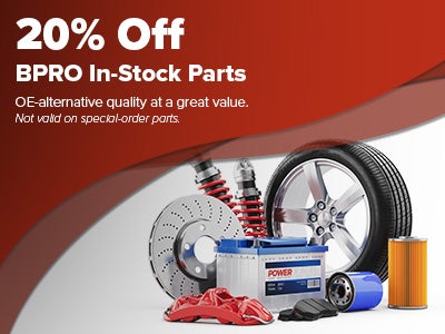 Plus tax and applicable fees. Discount applies to in-stock BPRO parts only. Not valid on special orders. May not combine with any other offer. Must present coupon at the time of purchase. See dealer for details.